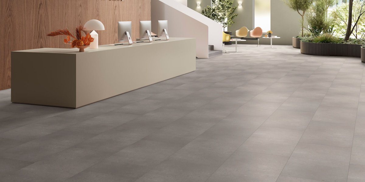 - Do recepcji i przestrzeni wejściowych – duży format płytki robi doskonałe pierwsze wrażenie