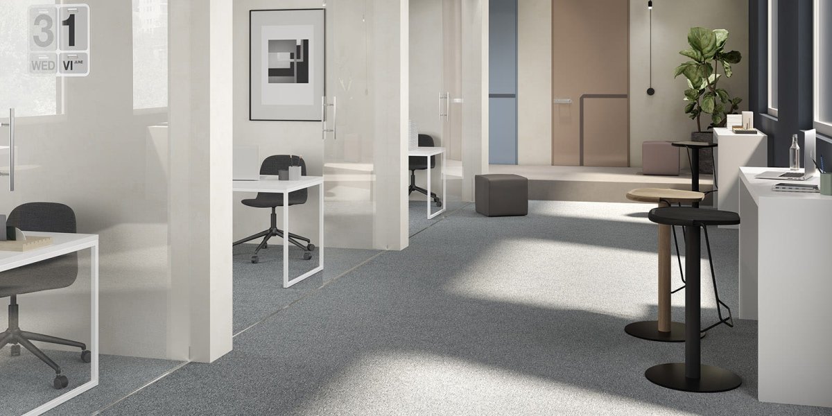 Wykładzina Medusa łączy w sobie sprawdzone rozwiązanie melanżowego wzoru z najnowocześniejszą technologią Solution Dyed Nylon. Melanżowy wzór to klasyka w świecie wykładzin komercyjnych – subtelne mieszanie kolorów tworzy dynamiczną powierzchnię, która doskonale ukrywa zarówno zabrudzenia, jak i ślady użytkowania. Dzięki temu wykładzina zawsze prezentuje się estetycznie, co jest szczególnie istotne w reprezentacyjnych przestrzeniach biznesowych. Klasa użytkowania 33 potwierdza, że Medusa sprawdzi się w najbardziej obciążonych lokalizacjach – od recepcji hotelowych i biur korporacyjnych o wysokim natężeniu ruchu, po restauracje, sale konferencyjne i przestrzenie handlowe. Technologia SDN gwarantuje trwałość kolorów niezależnie od ekspozycji na światło, a niska wysokość całkowita (5,2 mm) zapewnia eleganckie przejścia między pomieszczeniami.