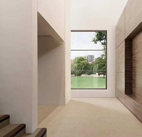 Stylistyka Material to odpowiedź na rosnące zainteresowanie surową, minimalistyczną estetyką. Półprzezroczyste odcienie Nuance oraz betonowe dekory idealnie komponują się z industrialnymi, loftowymi czy współczesnymi aranżacjami wnętrz. Wykładzina doskonale sprawdzi się w przestrzeniach wymagających charakteru – od apartamentowców premium, przez butikowe hotele, po nowoczesne biura i galerie.