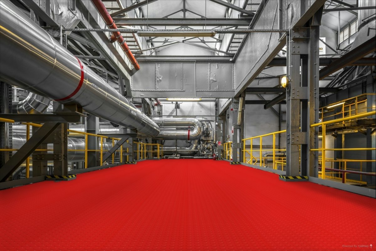 Izolacja cieplna i akustyczna są szczególnie wyraźnie odczuwalne przy grubości 10 mm z wypukłą teksturą. Warstwa powietrza zawarta między pieniążkami dodatkowo wzmacnia właściwości izolacyjne – podłoga jest wyraźnie cieplejsza w dotyku niż płaskie powierzchnie tej samej grubości. W nieogrzewanych magazynach czy halach produkcyjnych to znacząca różnica w komforcie pracy personelu. Właściwości akustyczne również są lepsze – wypukłe elementy skuteczniej rozpraszają fale dźwiękowe, redukując hałas kroków, upadających przedmiotów i wibracji maszyn.