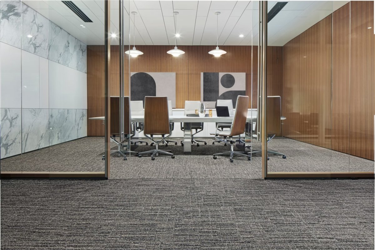 Design kolekcji Simple Does It balansuje między dyskrecją a charakterem. Neutralna paleta kolorystyczna pozwala na łatwe komponowanie z różnymi elementami wyposażenia wnętrz, meblami i kolorystyką ścian, podczas gdy teksturowana struktura z akcentami dodaje głębi i wizualnego zainteresowania. To idealne rozwiązanie dla biur, które chcą stworzyć profesjonalne, ale nie sterylne środowisko pracy.
