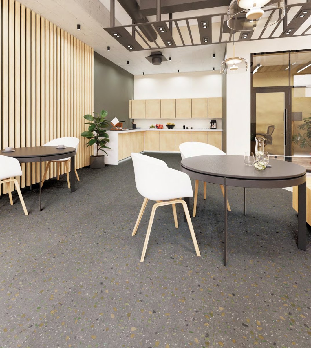 Terrazzo Grande to wyjątkowa kolekcja płytek winylowych LVT od renomowanego producenta Milliken, która przenosi klasyczną elegancję lastryko na wyższy poziom. Większe, wyraziste fragmenty marmuru tworzą efektowną kompozycję, która nadaje charakteru każdemu wnętrzu. Zaawansowana technologia wykonania i doskonałe parametry techniczne sprawiają, że wykładzina łączy w sobie estetykę z praktycznością. Seria All About Stone 5.0 to doskonały wybór dla przestrzeni komercyjnych wymagających trwałości i eleganckiego wyglądu.