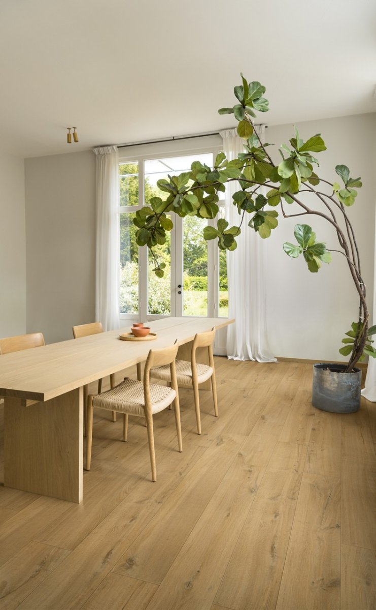 Quick-Step Impression to kolekcja, która zachwyca wiernym odwzorowaniem naturalnego drewna – czterostronną fuga idealnie dopasowana do wzoru deski sprawia, że efekt końcowy jest niemal nie do odróżnienia od prawdziwej podłogi drewnianej. Opcja Mix & Match daje wyjątkową swobodę aranżacyjną i pozwala stworzyć indywidualną, niepowtarzalną przestrzeń. Pełna wodoodporność i wysoka odporność na zarysowania gwarantują, że podłoga zachowa swój piękny wygląd przez długie lata. Dożywotnia gwarancja producenta to ostateczne potwierdzenie jakości, na której można polegać.