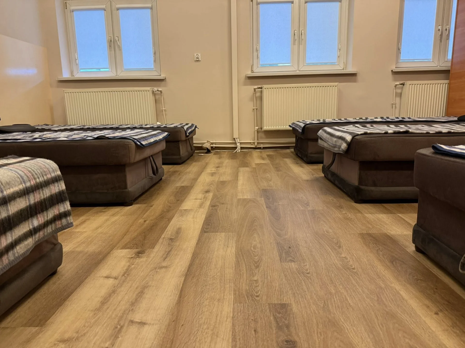 W ramach projektu nasza doświadczona ekipa montażowa wykonała profesjonalny montaż 470 m² paneli winylowych LVT marki Invictus od producenta AW. Wykładziny zostały zainstalowane w pokojach wypoczynku strażaków oraz biurach zarządu jednostki.