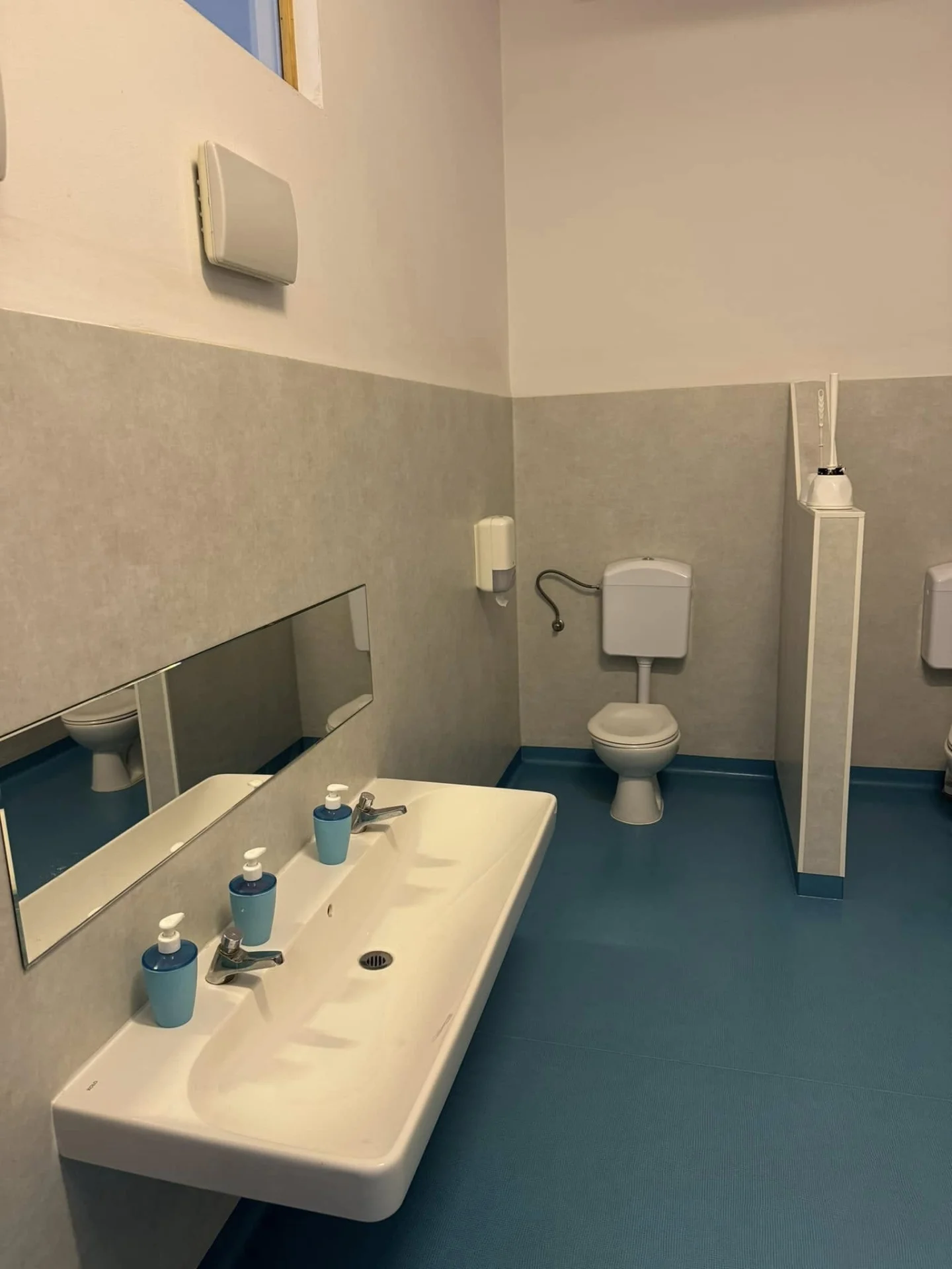 W ramach tego projektu wykonaliśmy prace wykończeniowe w 10 łazienkach przedszkola niepublicznego, obejmujące łącznie 180 m2 wykładziny podłogowej oraz 260 m2 wykładziny ściennej. Realizacja została zaprojektowana z myślą o specyficznych wymaganiach przestrzeni sanitarnych w placówkach opiekujących się najmłodszymi dziećmi.