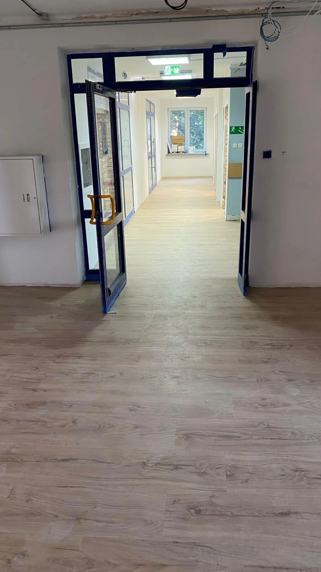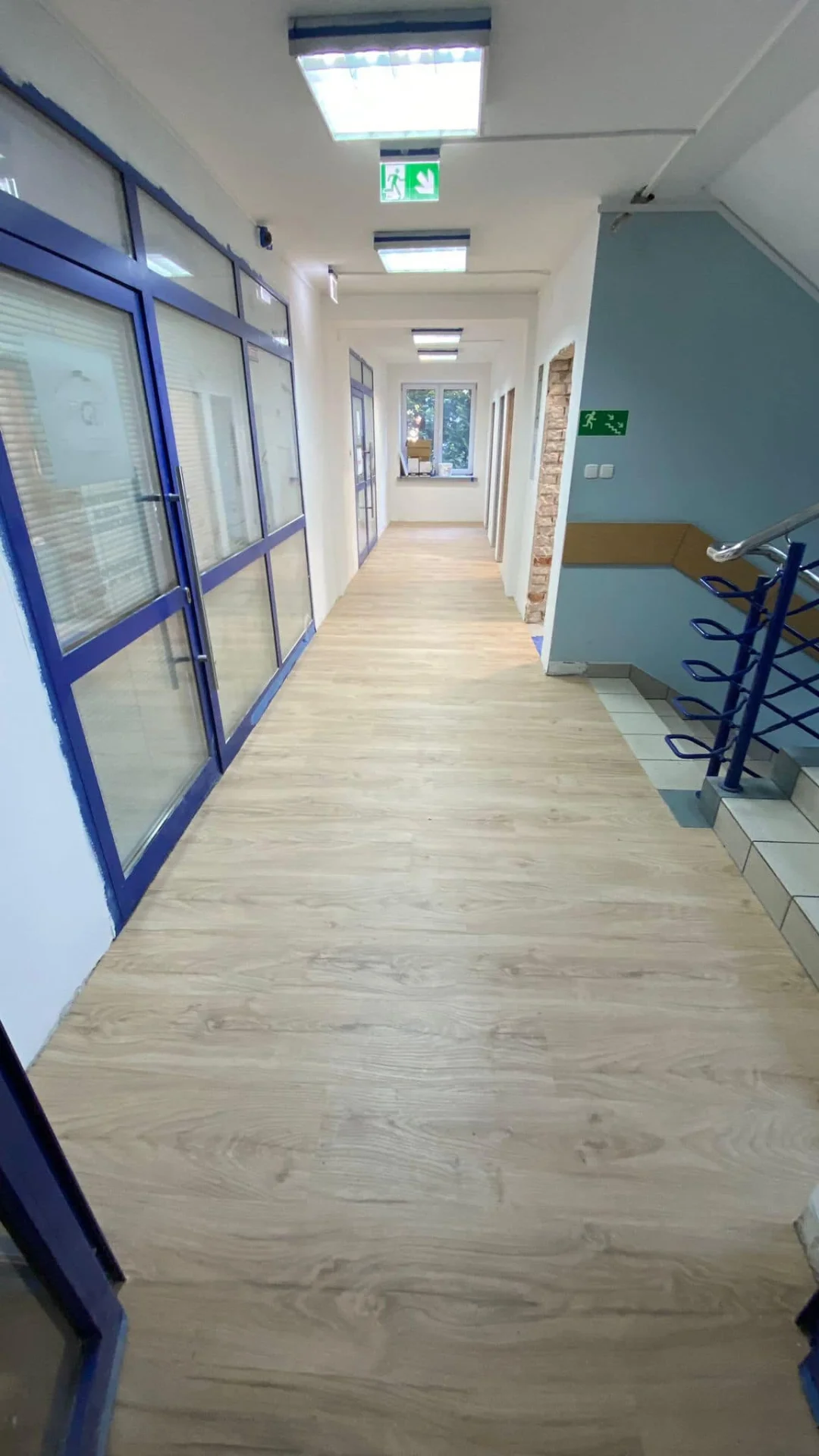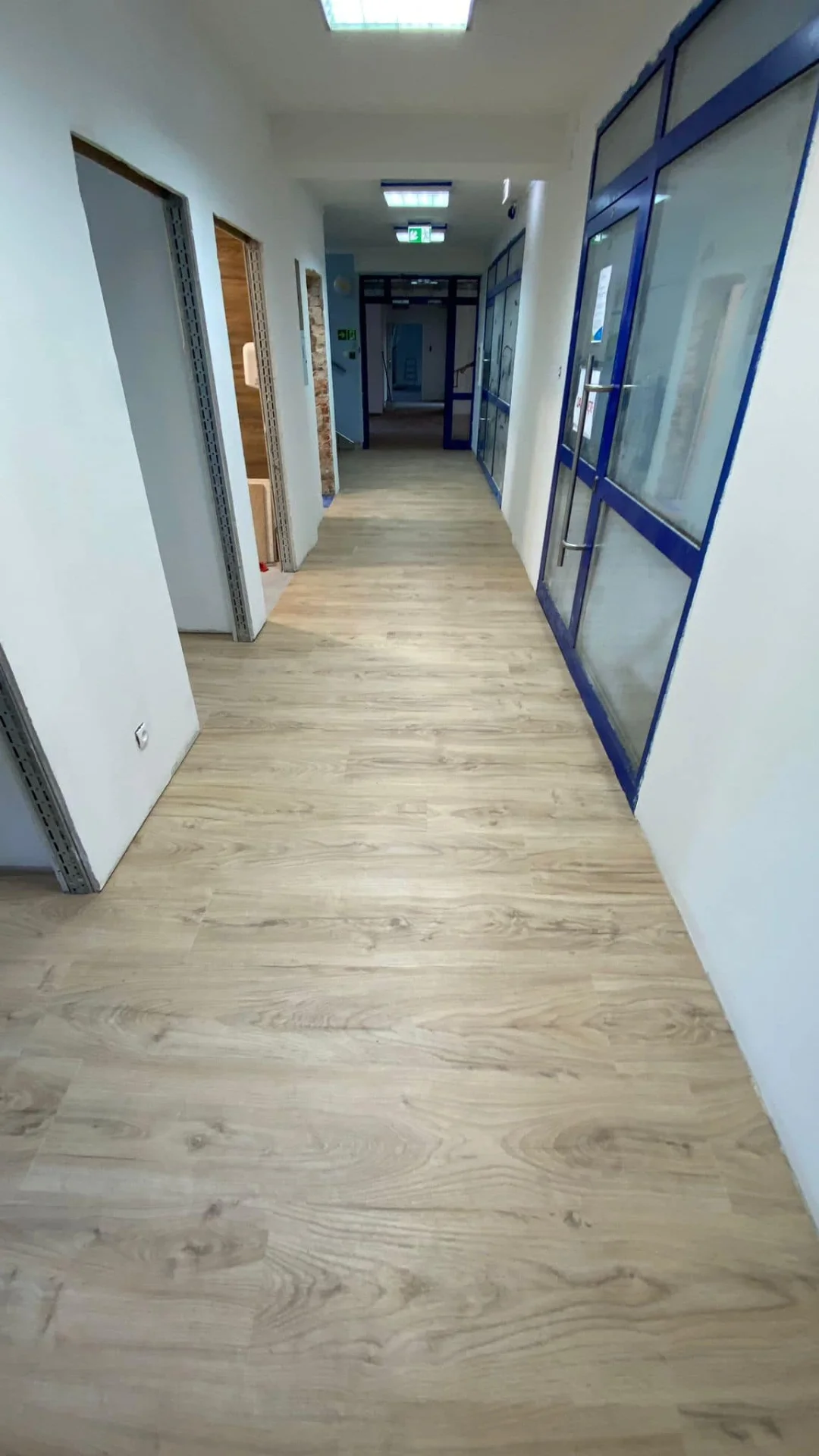 W głównych przestrzeniach biurowych, takich jak sale konferencyjne, korytarze czy pokoje pracowników, zastosowaliśmy panele LVT (Luxury Vinyl Tiles) firmy Forbo o powierzchni 170 m2. Panele winylowe LVT to jedna z najbardziej zaawansowanych technologicznie podłóg dla obiektów komercyjnych, łącząca w sobie estetykę naturalnego drewna lub kamienia z praktycznymi zaletami materiałów syntetycznych.
