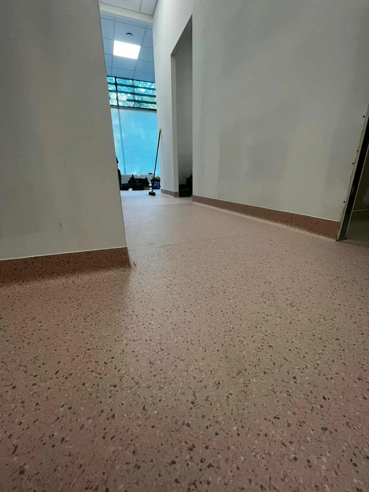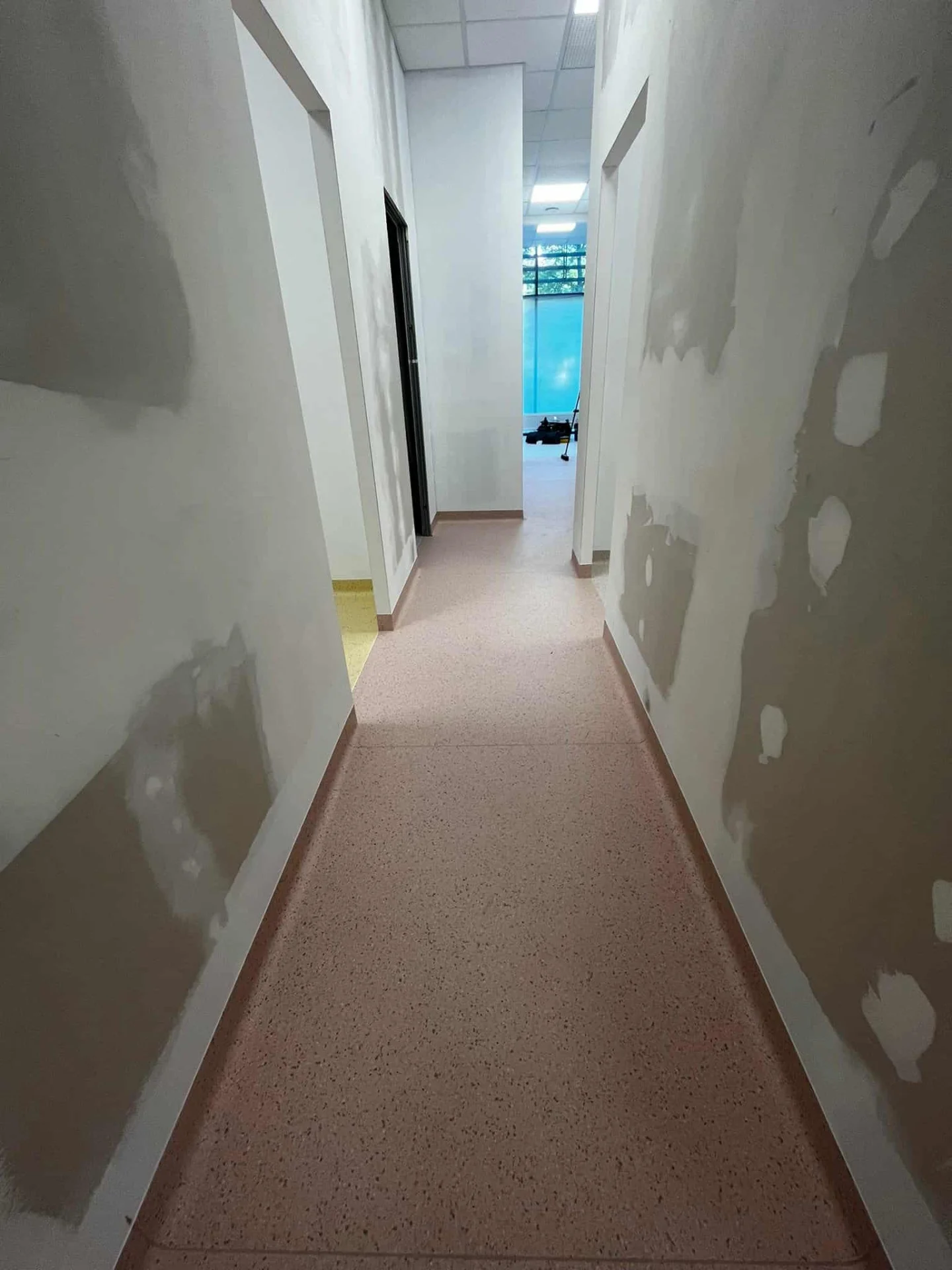 Przedstawiamy kolejną udaną realizację montażu wykładziny elastycznej PCV w przychodni weterynaryjnej. Zastosowaliśmy wykładziną obiektową w neutralnej kolorystyce z charakterystycznymi "chipsami" - drobnymi, kontrastowymi elementami dekoracyjnymi rozproszonymi po całej powierzchni.