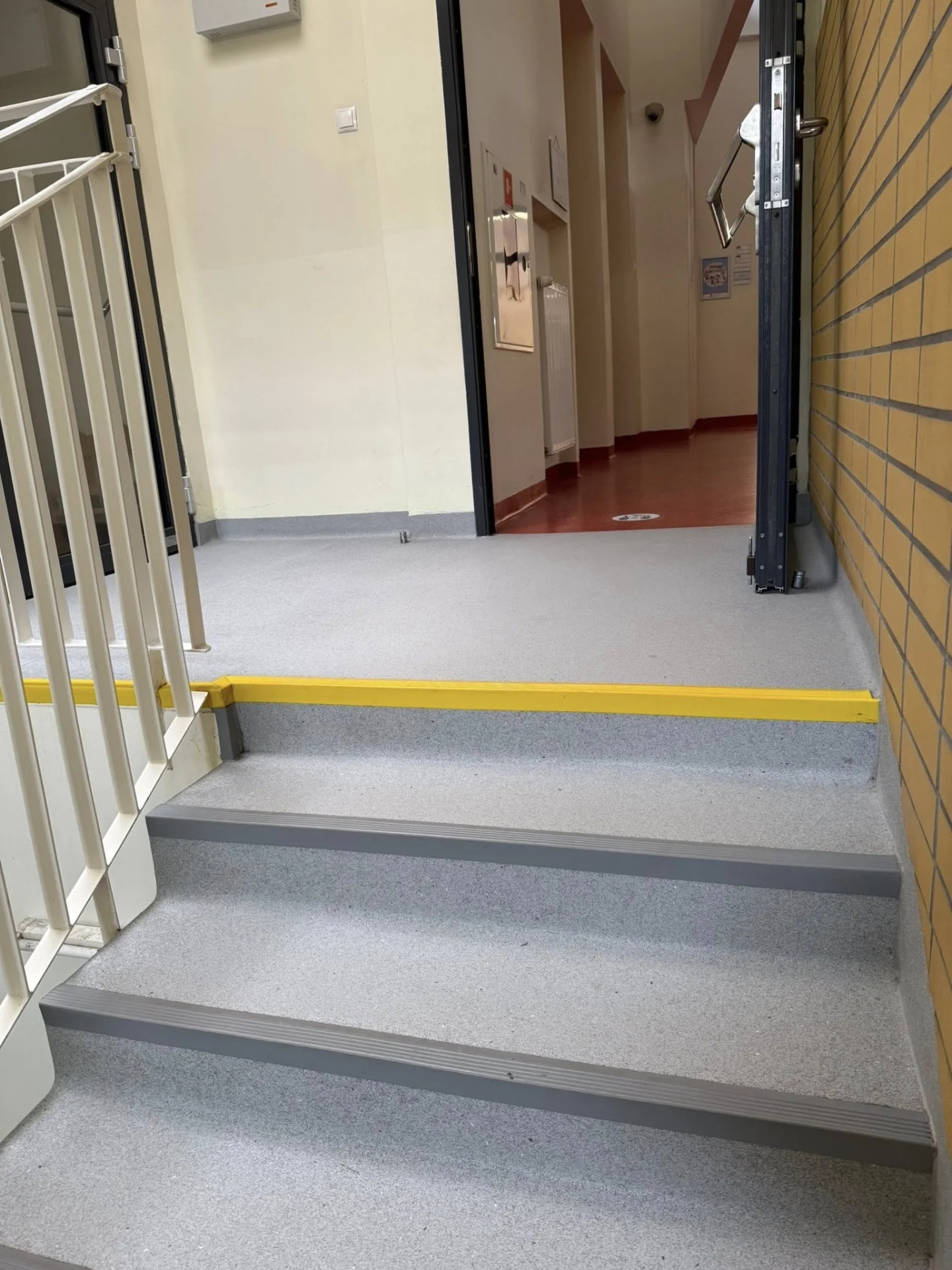 Na ciągach komunikacyjnych zainstalowaliśmy antypoślizgową wykładzinę od producenta Forbo Flooring Systems, która gwarantuje bezpieczeństwo użytkowników oraz wysoką odporność na intensywny ruch.