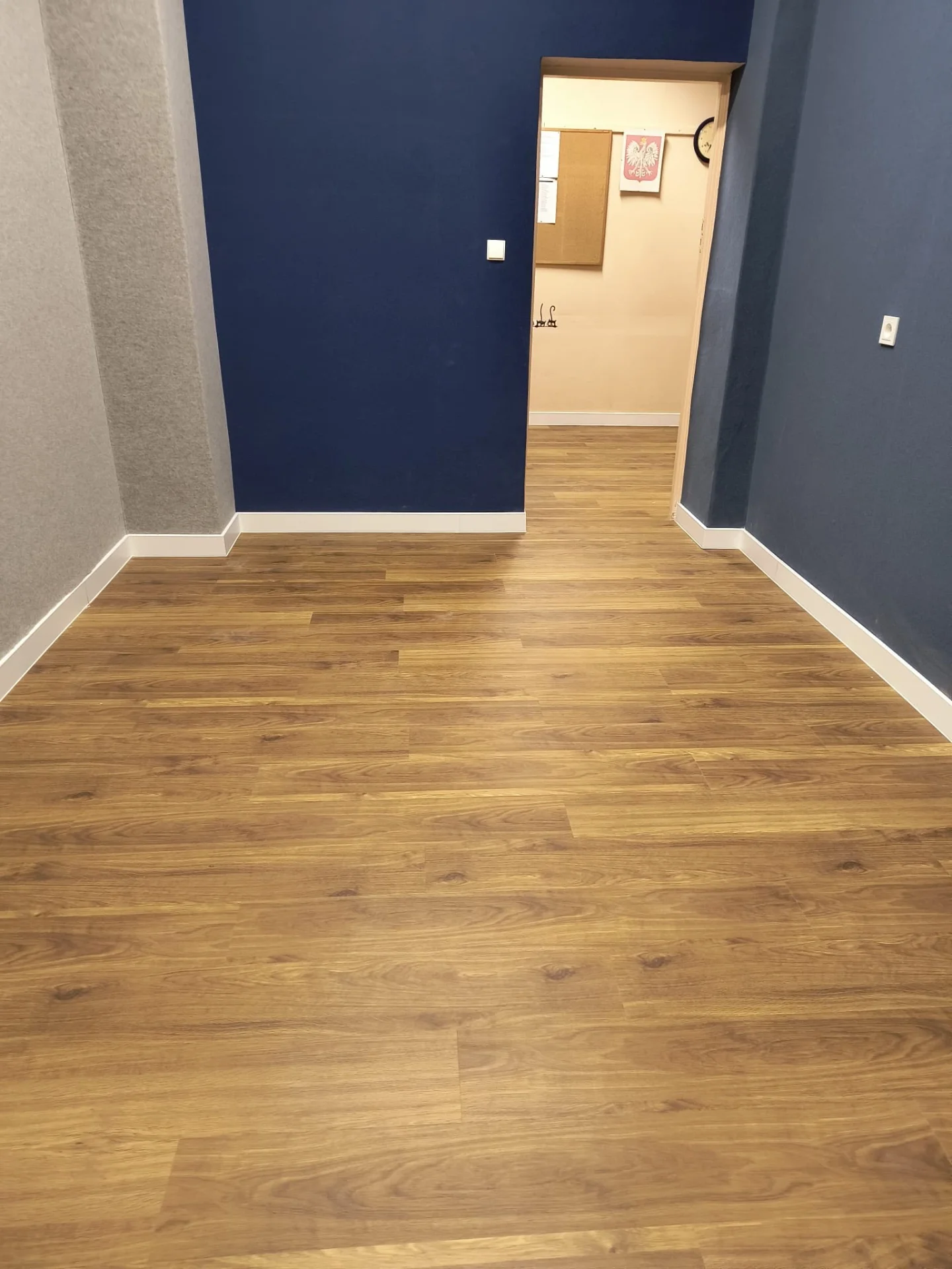 W gabinetach postawiono na montaż paneli winylowych – nowoczesnego rozwiązania łączącego estetykę, trwałość i łatwość w utrzymaniu czystości. Idealne dla przestrzeni biurowych w obiektach edukacyjnych.