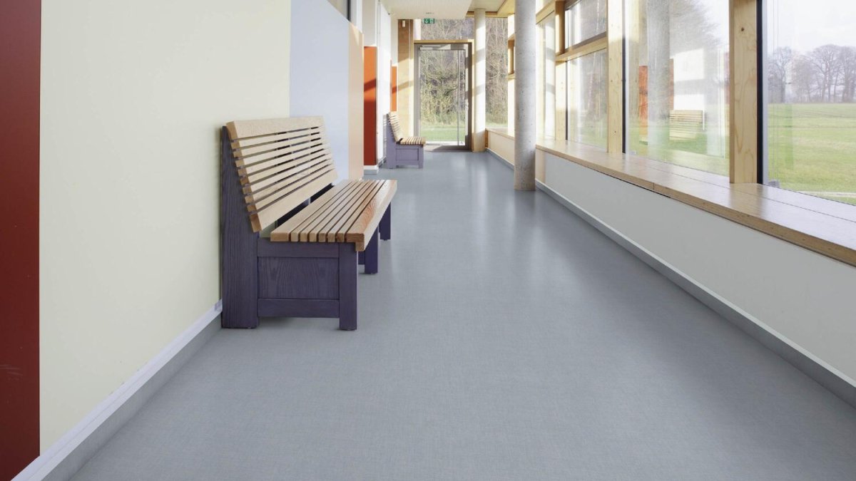 Safetred Sound to innowacyjna wykładzina winylowa łącząca zaawansowane rozwiązania akustyczne z właściwościami antypoślizgowymi i różnorodnymi opcjami wzorniczymi. Kolekcja obejmuje naturalne wzory dębu z linii Safetred Wood, elegancki tkany design Safetred Ion Linen oraz czyste, mineralne odcienie Safetred Natural, oferując szerokie możliwości dopasowania estetyki do funkcjonalności przestrzeni. Wyposażona w powierzchnię Safety Clean XP PUR, zapewnia zwiększoną odporność na plamy przy zachowaniu trwałej antypoślizgowości R10 przez cały okres użytkowania. Kluczową zaletą jest redukcja dźwięków uderzeniowych o 17 dB, co czyni Safetred Sound idealnym rozwiązaniem dla obiektów wielokondygnacyjnych wymagających komfortu akustycznego.