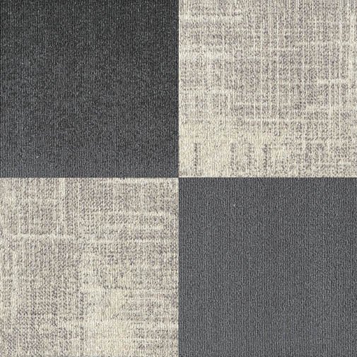 Pattern Play - Block to wyjątkowa kolekcja płytek dywanowych renomowanego producenta Milliken, która wyróżnia się oryginalnym dwukolorowym wzorem podzielonym na cztery części.